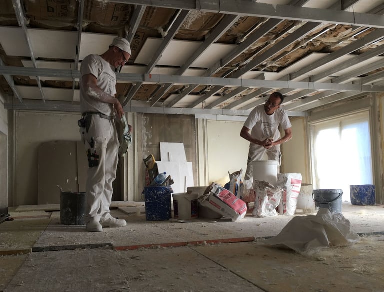 Pose soignée de plafonds en staff pour un rendu raffiné et durable.
